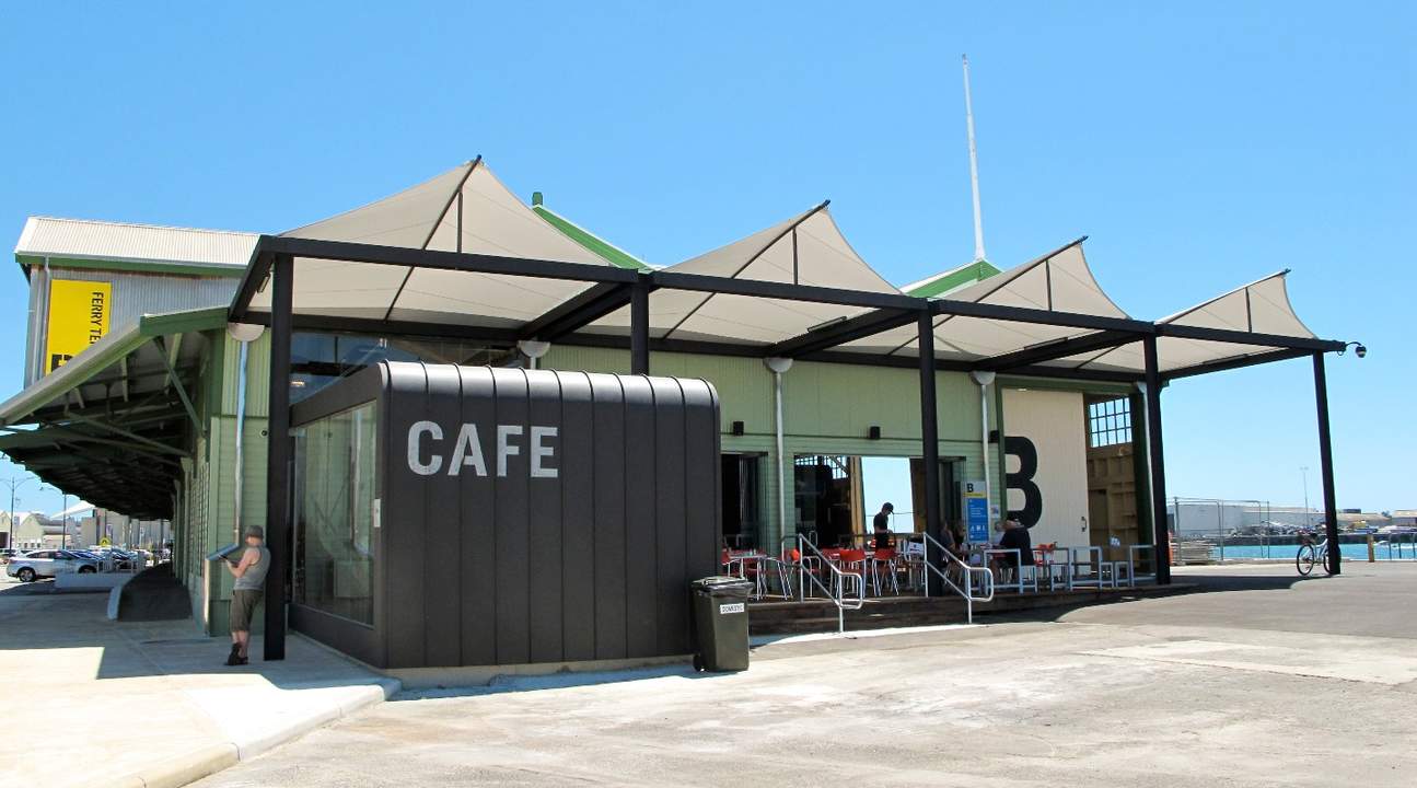 B Shed ist liegt in der Nhe von Fremantle. B Shed Cafe Grill Fremantle. B-Shed Fremantle Hafen bersicht.